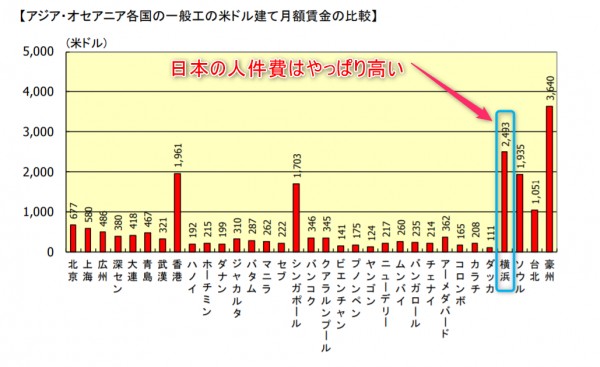 【 MUFG アジアオセアニアの賃金比較 2017年より 】